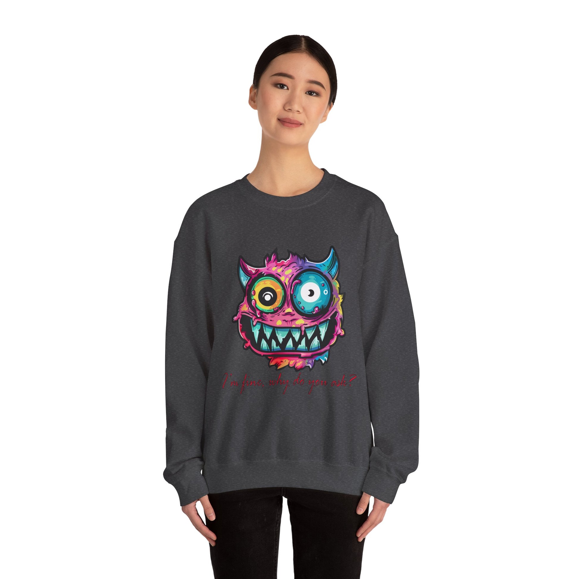 Introducing the Unisex Heavy Blend™ Crewneck Sweatshirt, perfect for those who love to express their playful side! Featuring a vibrant and whimsical design, this sweatshirt radiates a fun and carefree vibe that can brighten any day. It's a versatile addition to your wardrobe, ideal for lounging at home, casual outings, or cozy gatherings with friends. This sweatshirt is tailored for adults and makes a fantastic gift for birthdays, holidays, or just because! Whether you’re celebrating Halloween or simply looking to inject some color into your everyday life, this comfortable and stylish piece is sure to become a favorite. Embrace your unique style and flair with this eye-catching crewneck!